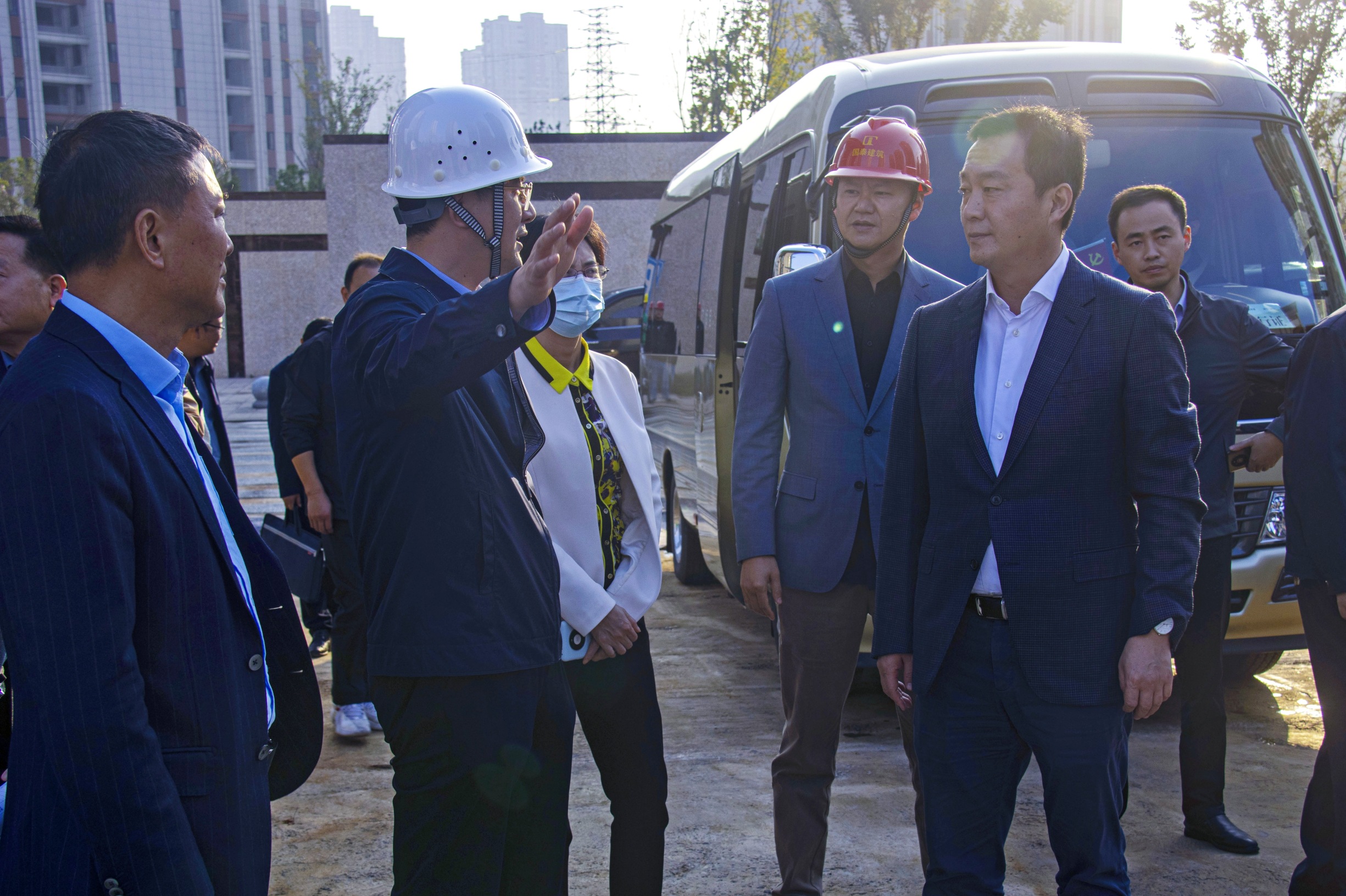 考察過程中,孔市長對國泰建筑一手抓疫情防控,一手抓建筑施工,按時按質(zhì)完成項目建設(shè),給予了高度肯定;同時希望認(rèn)真貫徹二十大精神,奮進新時代,用匠心打造精品工程,為城市經(jīng)濟高質(zhì)量發(fā)展貢獻力量。