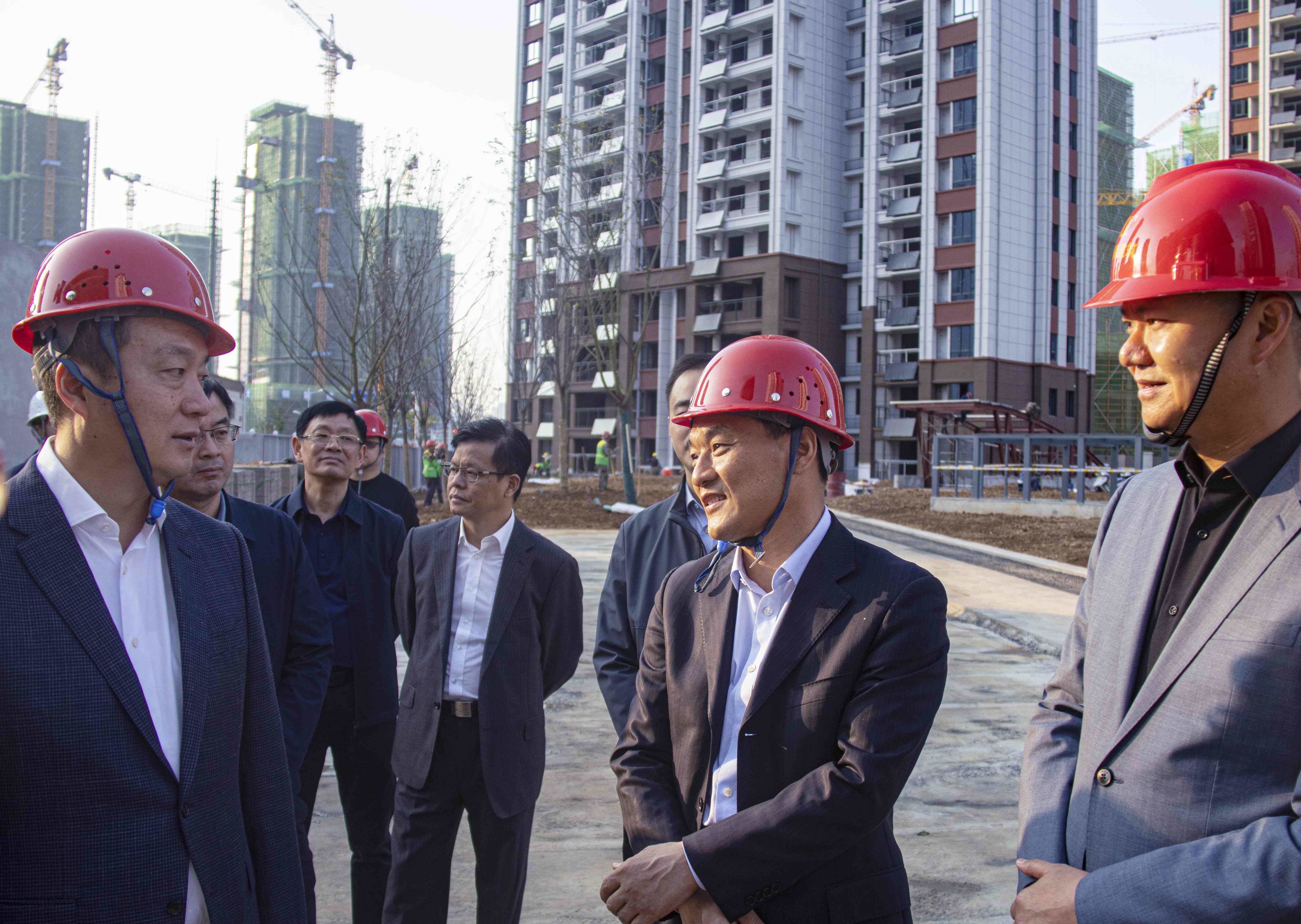 2022年11月2日下午,銅陵市委副書記、市長孔濤率市住建局、市建投等單位領(lǐng)導(dǎo)下基層,宣講黨的二十大精神,督導(dǎo)“暖民心行動”和為民辦實事事項的落實情況??资虚L一行調(diào)研了國泰建筑承建的潤澤花園項目,公司董事長張自州陪同考察了潤澤花園(一期)安置點項目現(xiàn)場。
