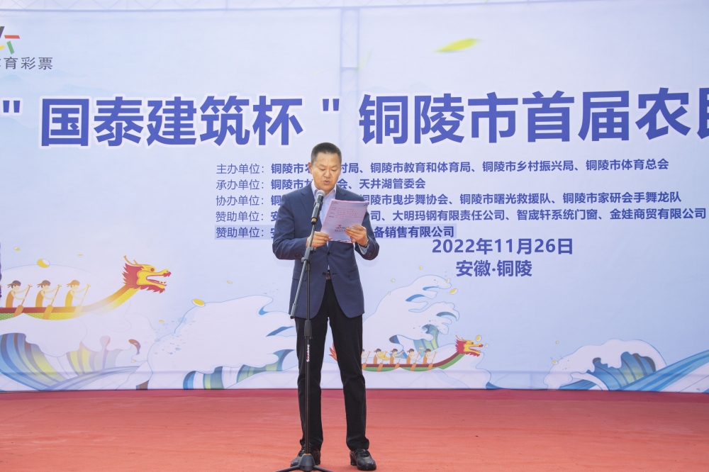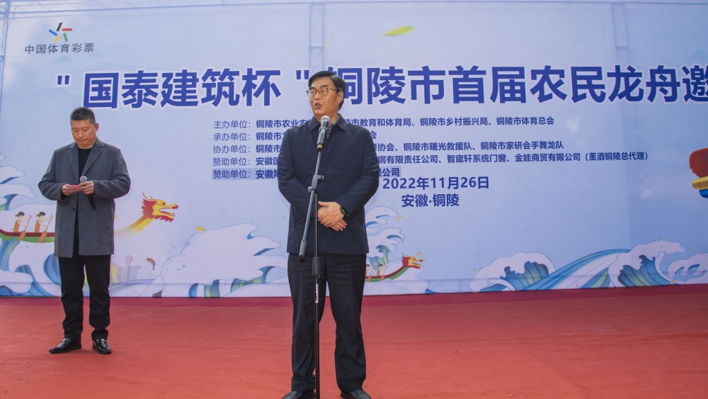 銅陵市人民政府副市長吳強、副秘書長張志遠、市農(nóng)業(yè)農(nóng)村局局長程志華、國泰建筑董事長張自州、市龍舟協(xié)會會長柯春生、龍舟錦標賽世界冠軍曹立娜等出席開幕式。