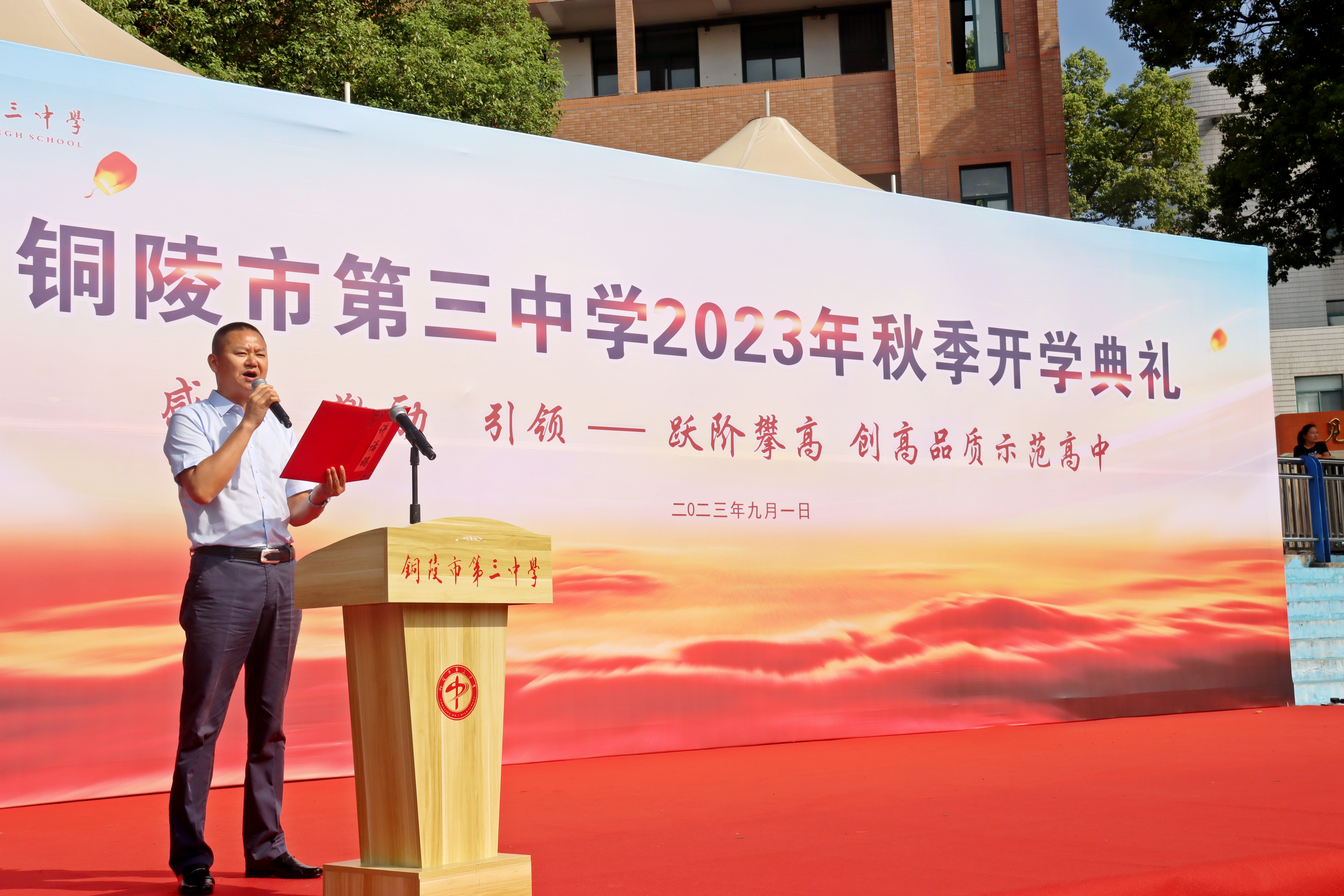 2023年9月1日上午,銅陵市第三中學(xué) 2023 年秋季開(kāi)學(xué)典禮暨國(guó)泰建筑勵(lì)志獎(jiǎng)學(xué)金頒獎(jiǎng)儀式圓滿落幕。市三中校黨委副書(shū)記、副校長(zhǎng)王合進(jìn),校黨委副書(shū)記張國(guó)榮,校黨委委員、副校長(zhǎng)章學(xué)標(biāo),校黨委委員、副校長(zhǎng)徐松成及全體三中師生參加活動(dòng)。國(guó)泰建筑董事長(zhǎng)張自州應(yīng)邀出席。